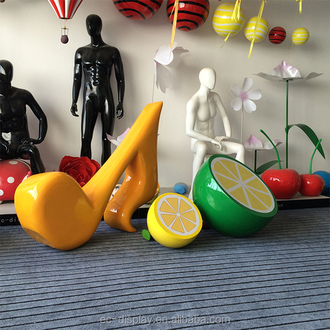 大きなグラスファイバーのレモン彫刻ディスプレイフルーツモデルドリンクショップ装飾グラスファイバーフルーツ彫刻販売