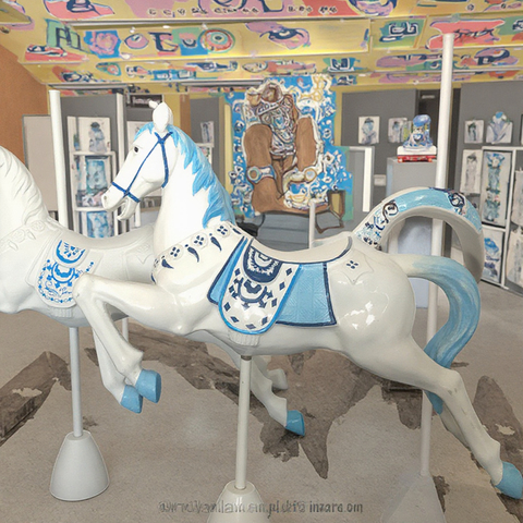 視覚的にカスタマイズされた人工サーカスグラスファイバーカルーセル彫刻モール装飾窓装飾カルーセル馬彫刻